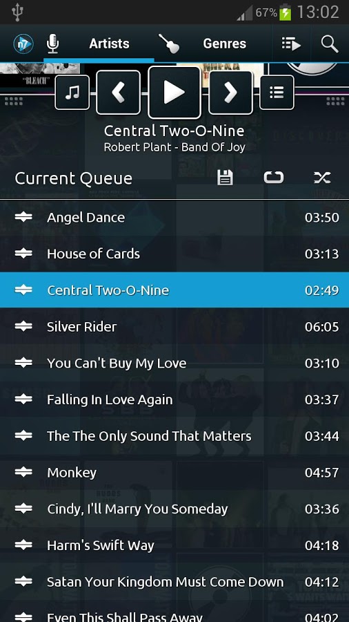 - Представление текстов песен, встроенных в файлы, или при помощи плагина musicXmatch
