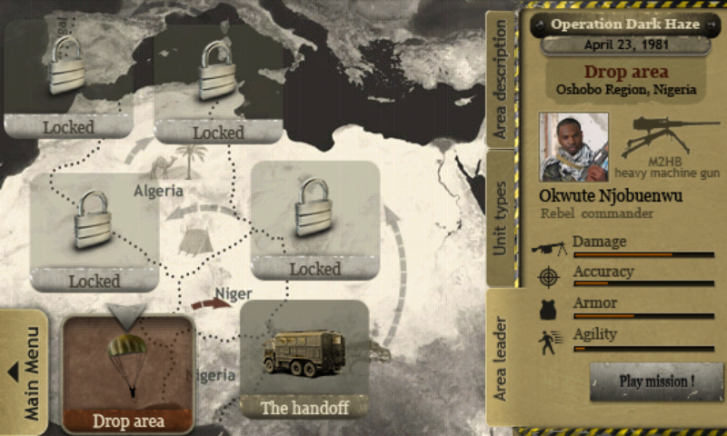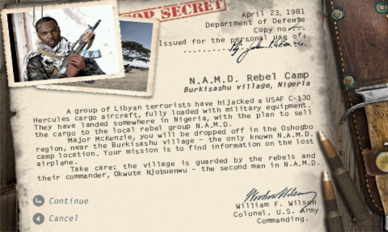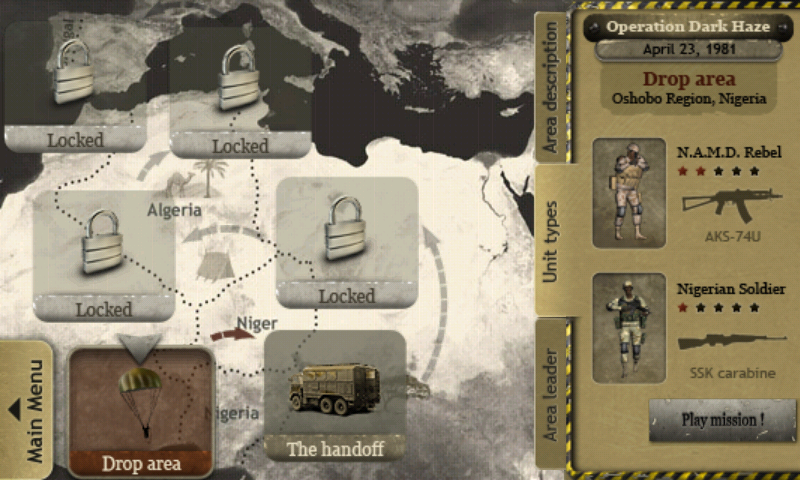 iCommando - отличный экшн для Вашего мобильного устройства, который по сути своей является симулятором жизни снайпера. Вам предстоит выполнять различные миссии, которые берут своё начало в 1980-х и начинаются с угона террористами грузового самолета, под завязку набитого военной техникой. Террористы приземлились где-то в Нигерии и планируют продать груз местной преступной группировке под названием N.A.M.D. Вам, разумеется, этому надо помешать.