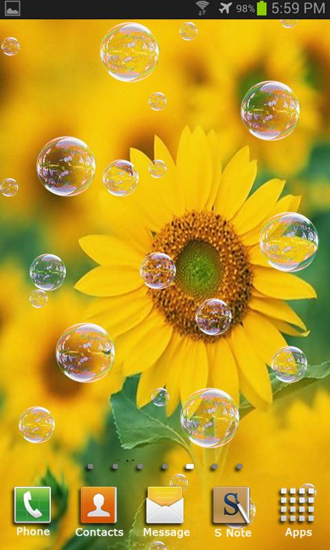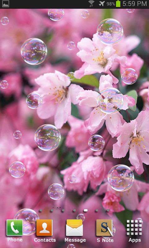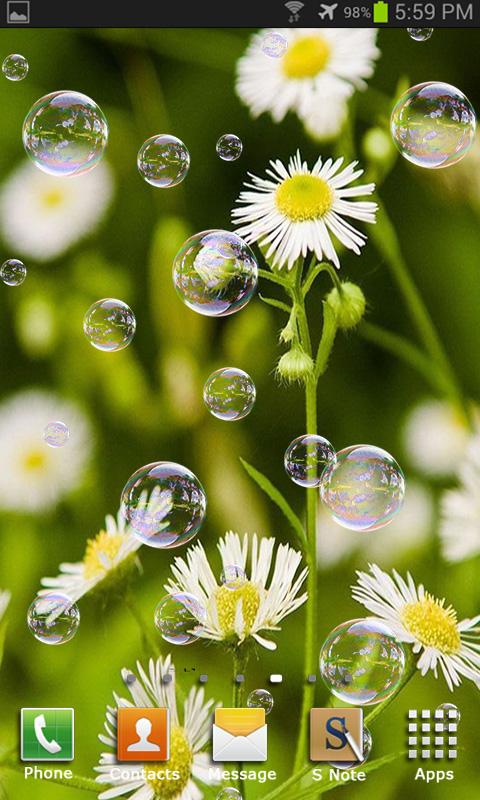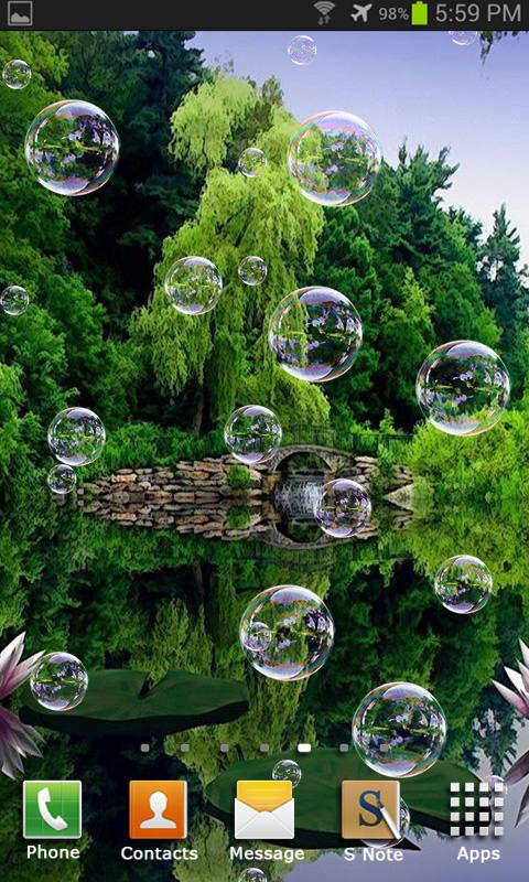 Обои с красивым фоном и летающими водяными пузырями, наслаждайтесь этим прекрасным приложением. Вы можете выбрать фон, скорость и количество пузырей.