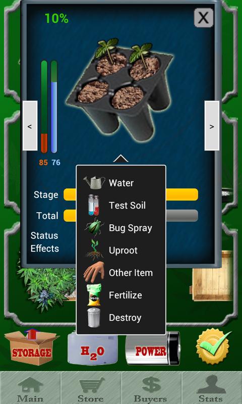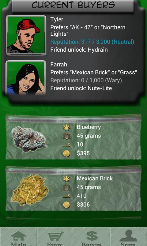 Игра в которой вам предстоит выращивать различные сорта конопли. Начинайте с нуля и развивайте свою компанию в геометрической прогрессии. Садите свои растения, ухаживайте за ними, удобряйте и поливайте их. Для каждого растения нужен свой уход, обо всем этом вы сможете прочитать в справочнике - руководстве по выращиванию различных сортов который находится в игре. После того как все будет готово, вам необходимо искать покупателя, входить к нему в доверие чтобы он подумал что у вас самый лучший товар. Продавайте растения и покупайте новые для того чтобы расширить свой бизнес.