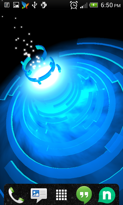 обои в высоко-технологичном стиле, на которых изображен абстрактный объект, напоминающий портал из научной фантастики. Вокруг портала кружатся раздробленные кольца и различные туманности. В настройках вы сможете сменить цветовую гамму, настроить эффекты и FPS.