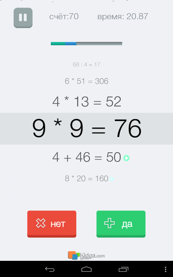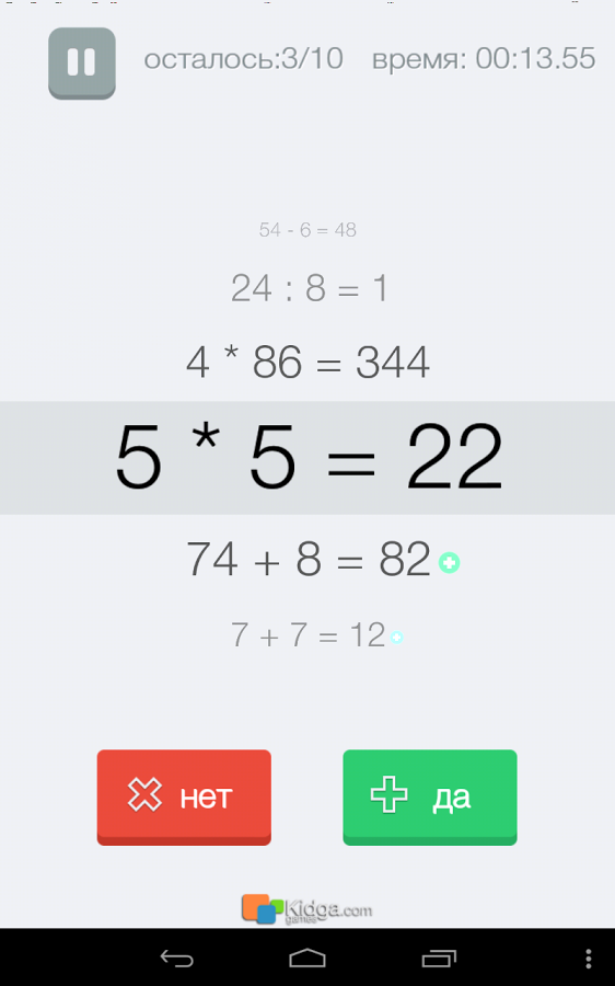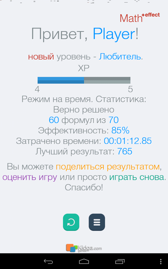 - Выбираем один из режимов игры (на скорость, количество формул, бесконечный), жмём «играть», играем.