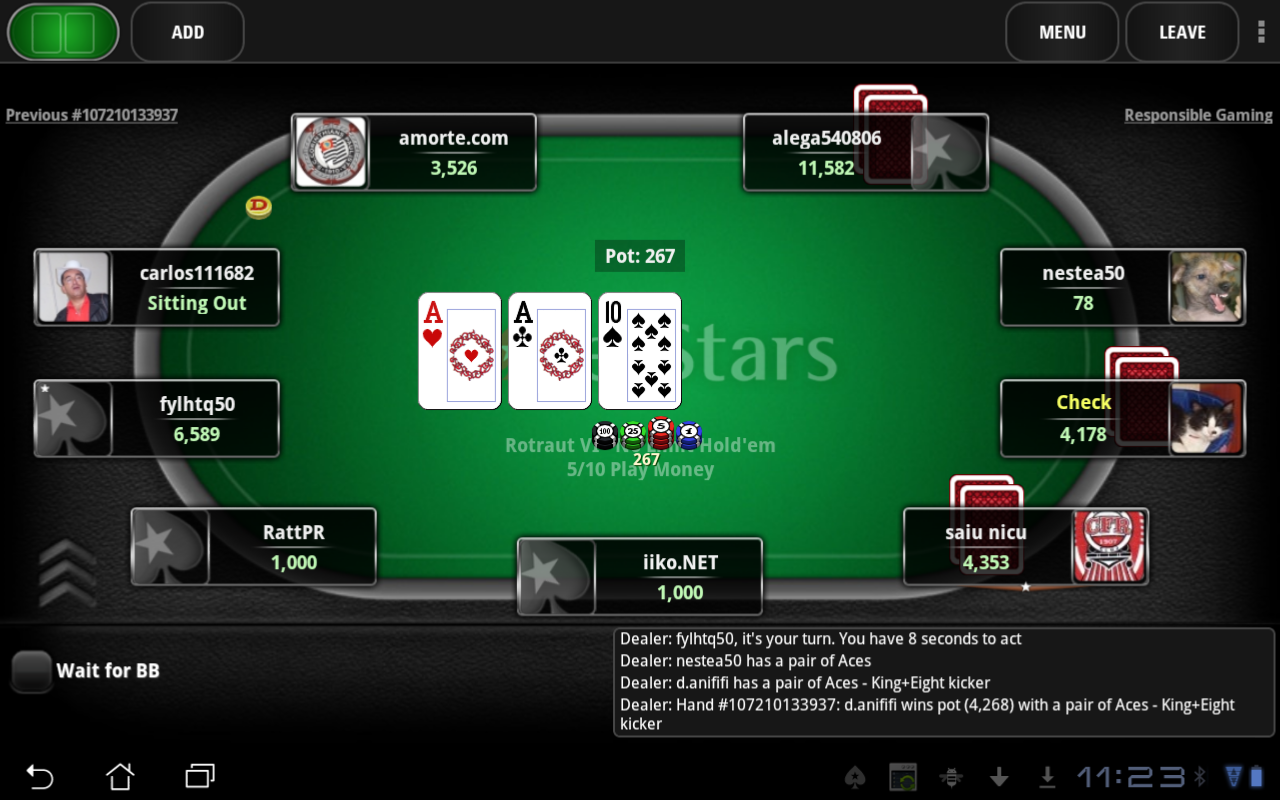 PokerStars - это крупнейший в мире онлайн-покер-рум. Играйте с нами в нашем приложении для игры на условные фишки. Загрузите наше приложение и получите доступ к самой большой базе игроков, крупнейшим покерным турнирам и акциям, а также целому набору уникальных и эксклюзивных функций.