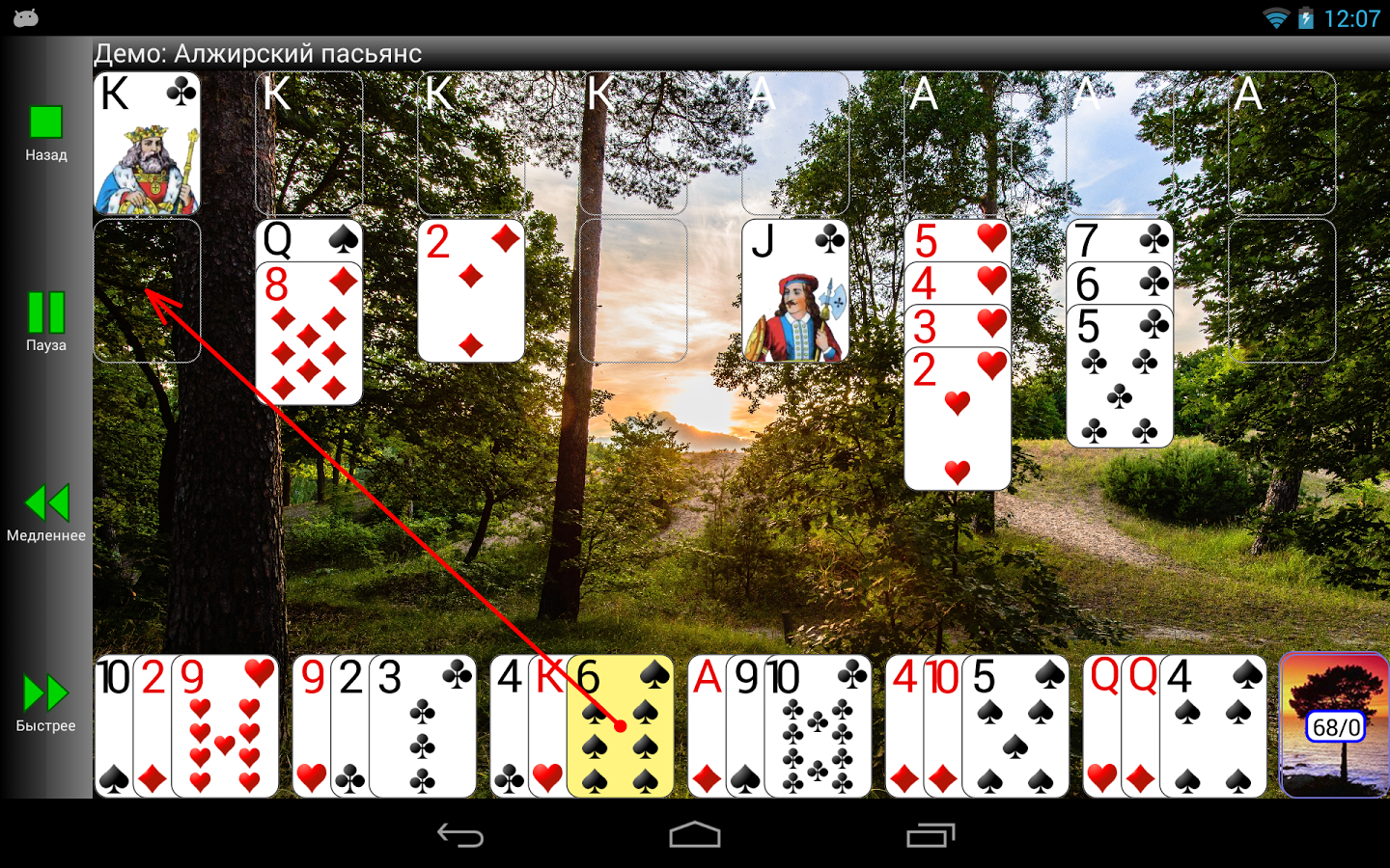 "Любимые пасьянсы" - это коллекция из 12 самых популярных пасьянсов: Алжирский пасьянс, Гольф, Клевер, Косынка, Кэнфилд, Пирамида, Простой Паук, Расчет, Свободная ячейка, Скорпион и Три пика. Для каждого пасьянса имеется описание и демонстрация.