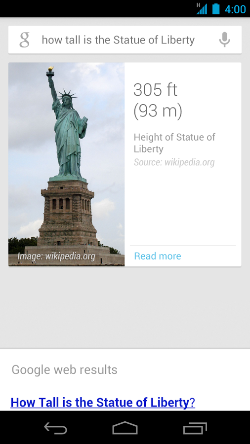И это ещё не все! *Google Now* показывает подсказки, когда они действительно нужны. Прогноз погоды, сведения о пробках на дороге, напоминания и многое другое – только для вас.